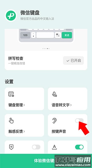4、在设置列表中找到按键声音选项,将其开关关闭即可消除打字音效。