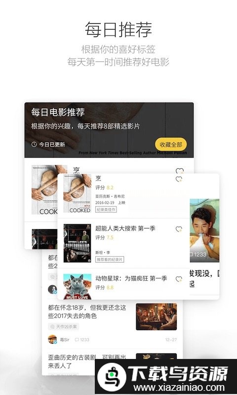 修复了一些问题,提升使用体验;社区功能优化,能随时看到最新用户动态,方便与同好畅聊影视内容。