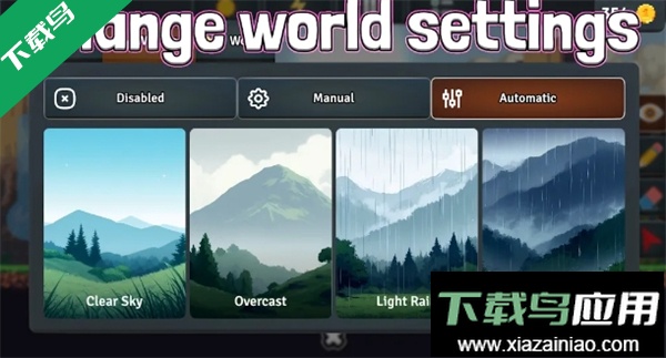 2、扮演掌控天气的角色,为世界设置多样天气模式,借此改善环境、增添生机;