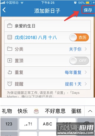 3、完成设置后,点击页面顶部保存按钮,即可成功创建倒数日;