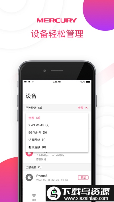 2、管理已接入设备,支持一键禁用或限制其上网带宽;