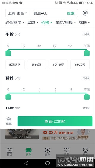 6、在搜索结果页面,可以点击“价格”或“筛选”按钮,进一步按预算范围或车辆特征缩小选择范围。