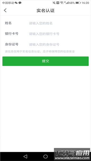 3、按要求填写姓名、银行卡号及身份证号码,然后提交信息。