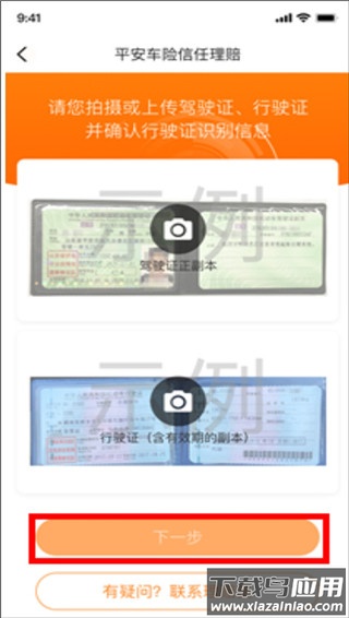 3、上传清晰的驾驶证和行驶证照片,继续下一步;