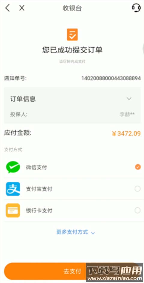 5、完成在线支付,随后即可查看支付结果与生成的电子保单。