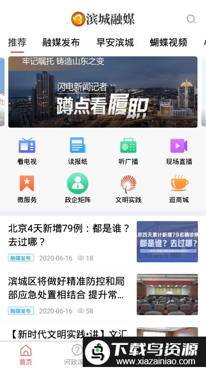 2、作为滨城区权威的移动政务融媒体平台,融合了点播、互动及头条资讯等多种服务;