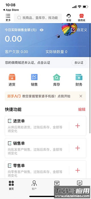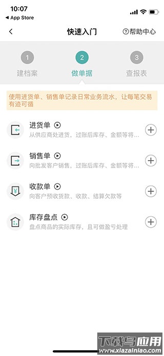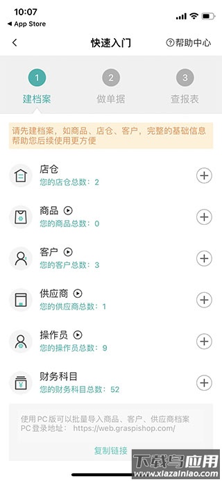 第三步,应用主要分为五个板块:商品、进货、库存、销售、财务