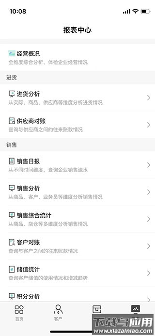 第七步,点击“销售”可进行客户分类与档案管理、开具发票、分析销售状况、查询退换货记录、完成客户对账