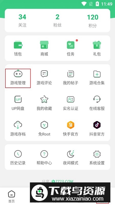 3.用户也可通过点击“我的”页面中的“游戏管理”选项,进入列表进行游戏更新操作。