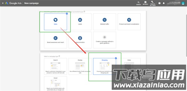 1、于Google Ads后台创建新广告系列,选择销售为目标,广告类型选用购物广告,设置预算与出价后启动推广;