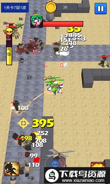 这款游戏融合了卡通风格与打僵尸玩法,每层地图与怪物均为随机生成,体验十分新奇。通过关卡挑战可以解锁各类幸存者英雄,在战斗中拯救他们并使其加入你的队伍;每拯救两名相同幸存者,该英雄等级便会提升一级。