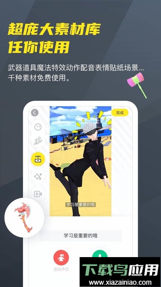 由Vcoser团队精心打造,是二次元爱好者的首选社交应用;在这里你可以选择动漫人物模型,添加动作、背景特效、表情台词等元素,与亲友或陌生人开启一场跨次元互动。软件提供简易的mmd制作功能,助你快速成为同人动画创作者。