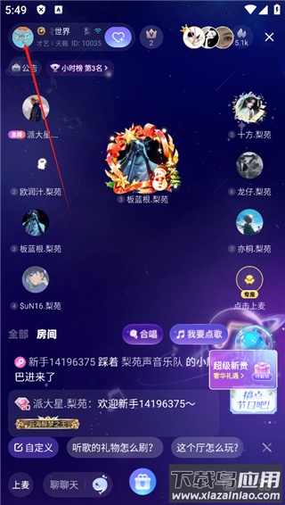 2、进入房间后,点击界面左上角的用户头像;