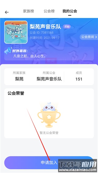3、在弹出页面中找到“我的公会”入口,点击底部“申请加入”按钮;