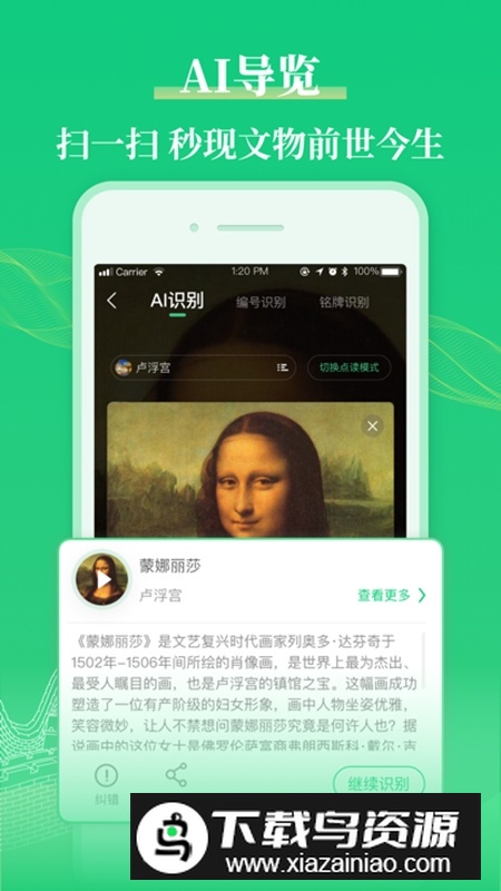 2、借助AI智能识别博物馆展品,用手机对准展品即可快速识别并播放讲解,让博物馆参观变得清晰明了。