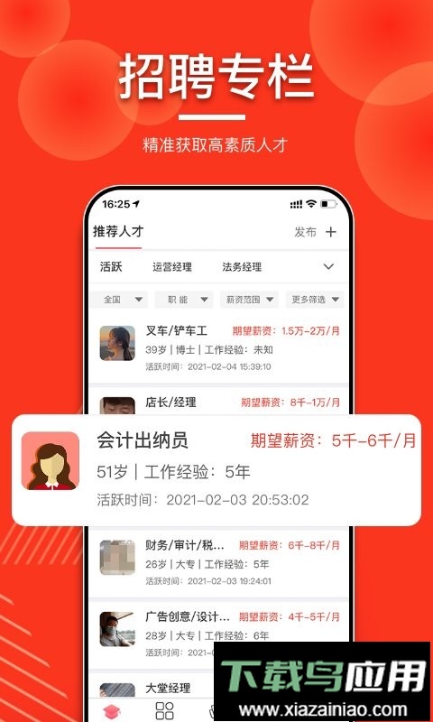 发才网app为招聘企业对接各类高素质人才,同时为求职用户提供海量职位选择,实现供需双方的精准匹配。无论是寻找理想岗位还是招募合适员工,平台都能满足多样化需求,助力高效达成目标,欢迎下载体验。