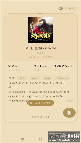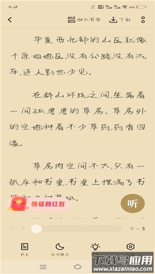 4、点击屏幕中央可唤出功能菜单,用户可调整阅读设置、查看目录或下载缓存小说内容。