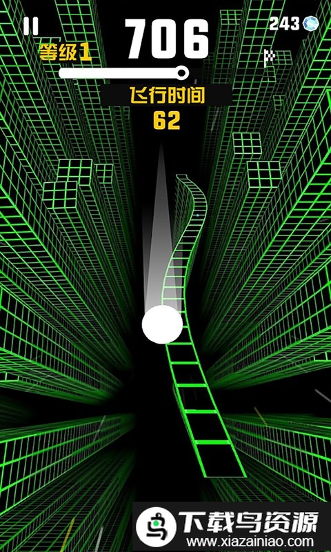 4、通过长按并拖动的方式控制小球在跳板间前进,注意确保每次都能准确落在跳板上。
