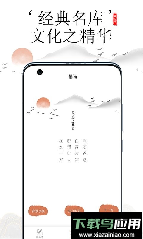 应用内置海量诗词数据库,创作速度迅捷;允许自定义藏字位置、限定字数及韵脚,自由搭配诗句,任性书写;若你热爱文学,也可在此保存个人作品,系统能依据设定心境辅助自动成诗。