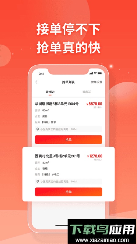 透明装修平台为内部工作人员量身打造了打扮家服务者移动办公应用,该软件适用于不同岗位的员工,方便大家在线接收或争取订单任务;同时它也能帮助服务者与客户保持顺畅的即时沟通。