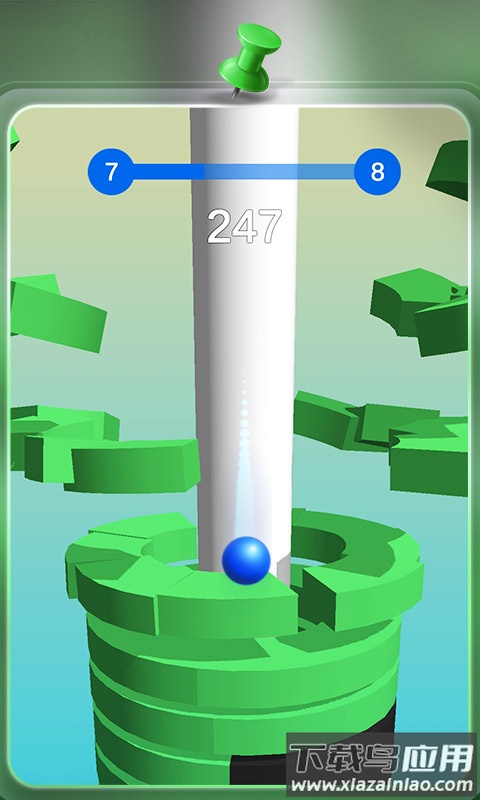 3、通过左右滑动屏幕来转动柱子,让小球顺势下落。注意避开障碍,下落得越深,评分就越高,最终奖励也越丰厚。