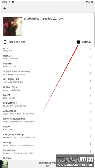 3、点击进入任一歌单,即可浏览其中的全部歌曲;点击收藏按钮可将该歌单保存至个人列表。