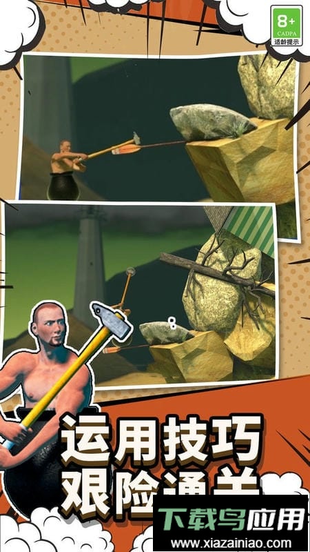 游戏中,你将扮演一位从黑色大罐中探出身子的光头角色,抡起锤子向前攀行。操作并不复杂,也无需高超技巧,只需用手指拖动挥舞锤子,努力攀登那座由各式素材模型堆砌而成的高峰。行进途中若停滞不前,还会听到旁白温和的嘲讽,体验一种独特的挫败感;一旦从高处跌落,很可能直接滑回起点,必须从头再来,无论经历多少次失败。