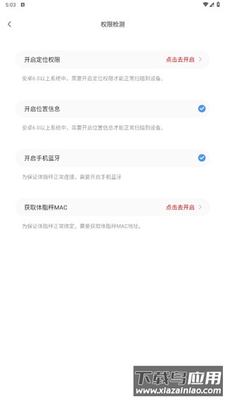 2、绑定体脂秤需要开启位置信息、蓝牙等必要权限;