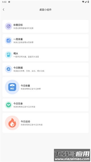 3、此处展示多种组件,例如饮水提醒、今日运动、当前体重等,选择需要添加的组件点击进入;
