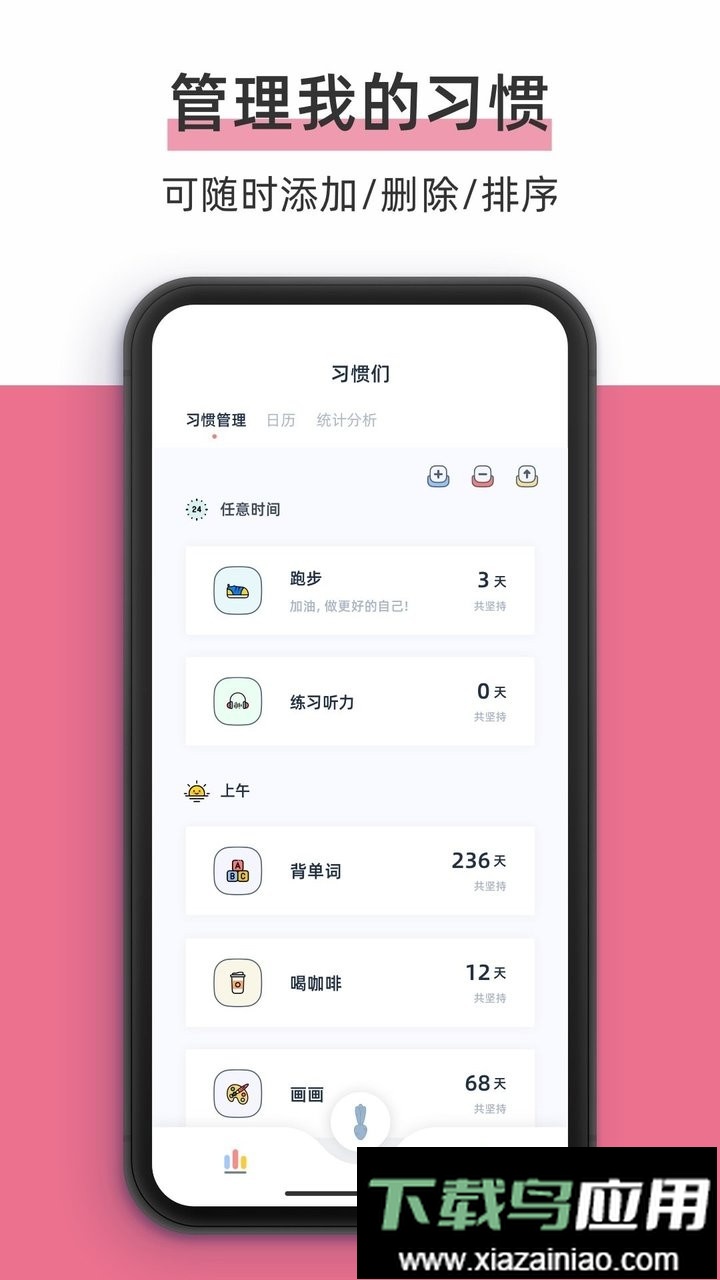 习惯管理:拥有丰富的习惯库,操作轻松简单;