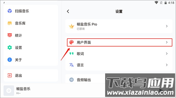3、在设置中选择“用户界面”选项。