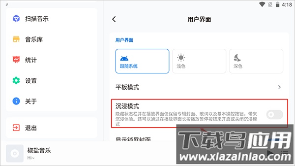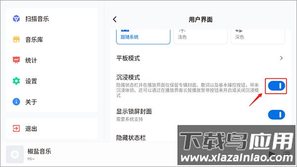 如何在椒盐音乐app官方版中启用沉浸模式?