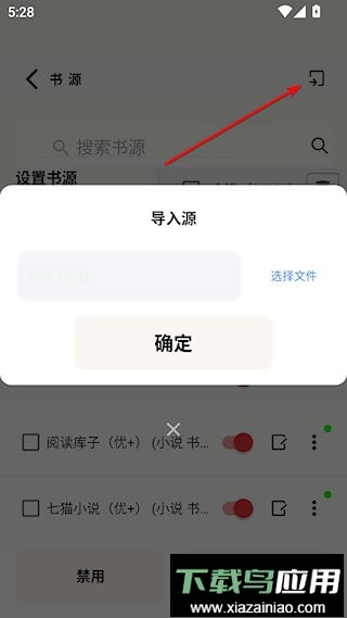 3、点击页面右上角功能按钮,可通过输入URL链接或上传本地文件的方式导入书源。