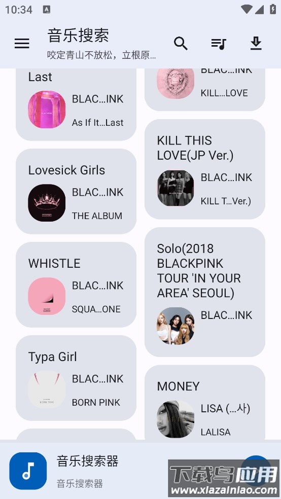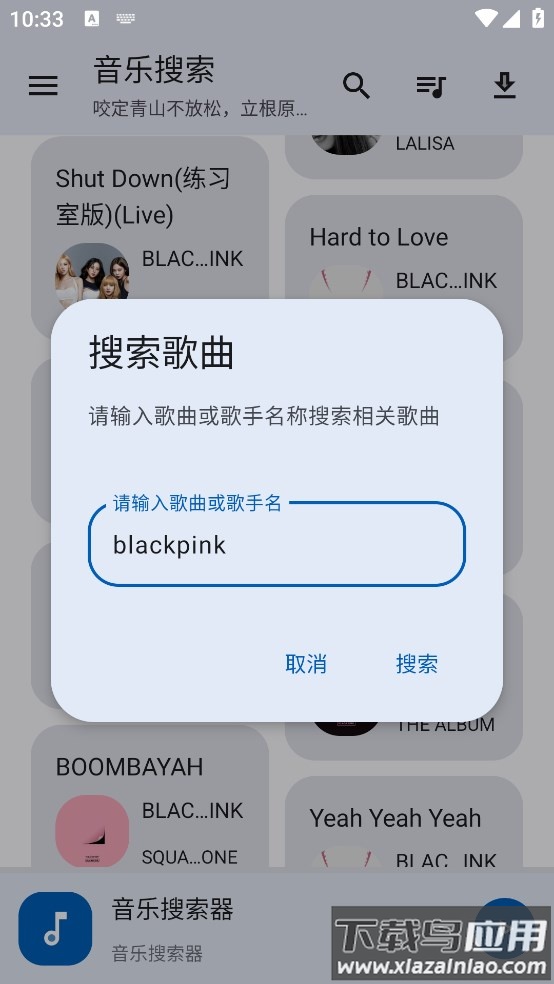 2、在搜索框输入歌手或歌曲名称进行查找,例如输入Blackpink。