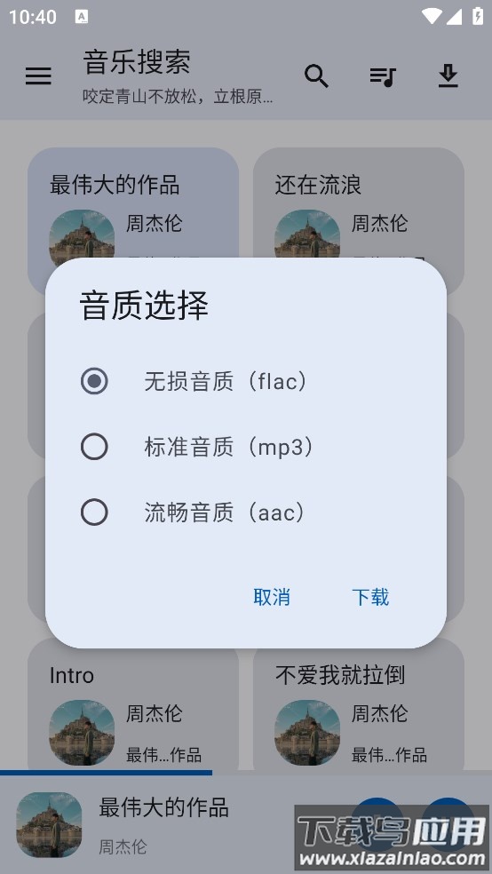 6、需要离线收听时点击下载按钮,应用提供多种音质规格供选择。