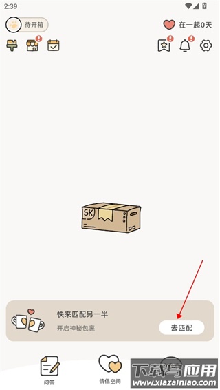 1、打开应用后需先完成配对才能开启宝箱,点击界面下方立即匹配按钮;