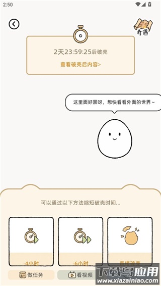 4、通过完成任务、观看视频或使用钻石加速孵化蛋,孵化成功后解锁全部功能。