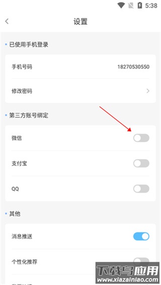 4、进入设置后,即可看到微信绑定功能,按提示完成绑定操作。