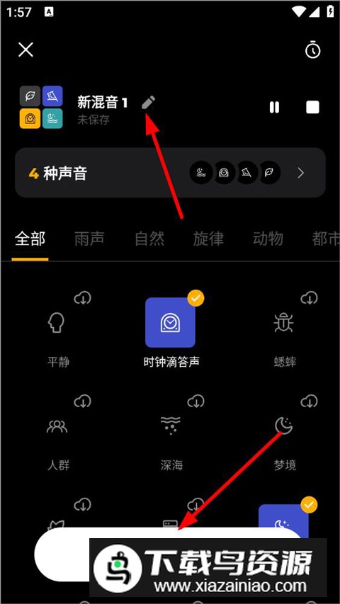 3、进入编辑界面,将所需声音添加至新混音,可在左上方为混音命名,最后保存设置即可。