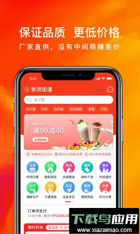 切实解决食材采购行业效率低的问题,商家可随时随地下单,轻松完成全品类采购,省人省事省时间;配备专业配送团队与优化线路规划,为合作商家提供优质的免费配送服务。