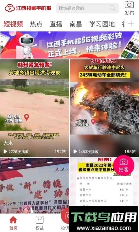 江西视频手机报app是一款融媒体服务平台,用户可以通过它观看各类视频新闻。该应用每日更新江西省内最新最热的资讯,并设有短视频与视频直播板块,满足了人们通过视频浏览新闻的需求。
