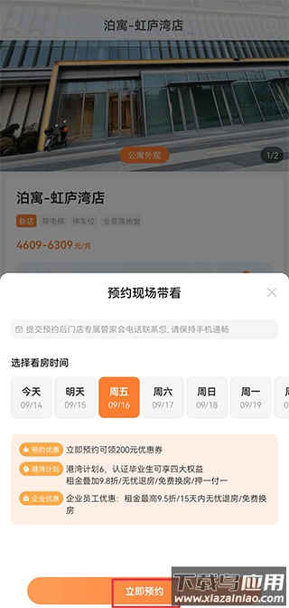 3、选择看房时间,点击立即预约,等待门店管家联系。