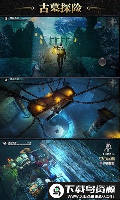 1、3D画面渲染效果出色,营造出紧张刺激的盗墓寻宝氛围;