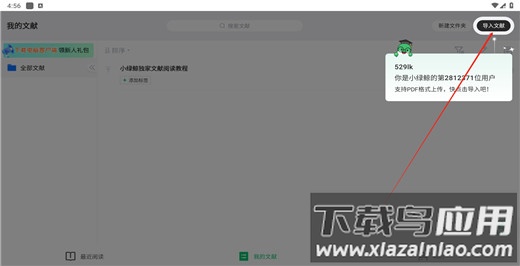 2、进入首页后,点击右上角导入文献选项,将需要使用的英文文献加入平台;