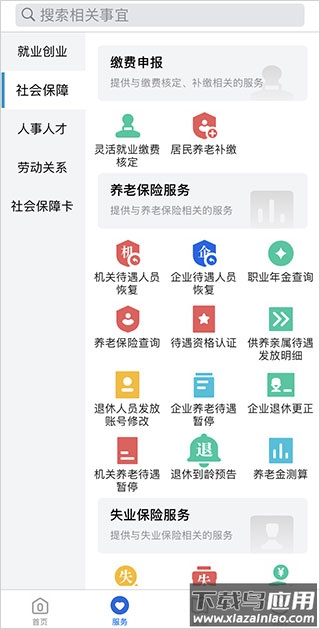 启动河北人社app后,点击首页中的服务选项。