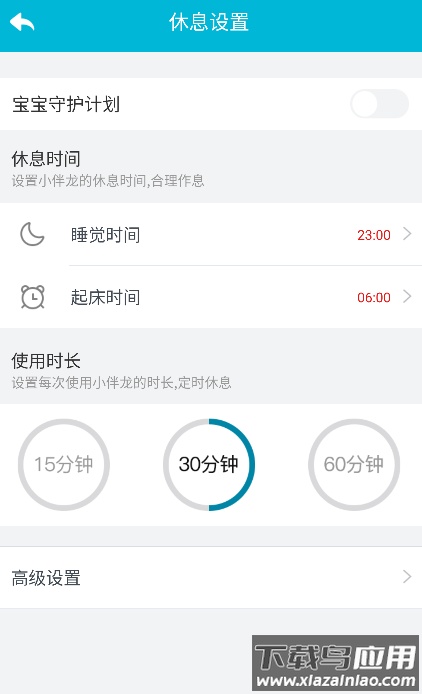 2、在该设置页面,可自定义休息时段与单次使用时长,帮助管理孩子使用设备的时间。
