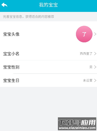 3、在“我的宝宝”信息页中,找到宝宝小名选项,点击即可修改名称。