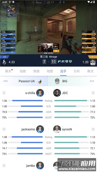 4、具备全面的赛事数据服务,包括即时比分、动画直播、战队统计等功能。