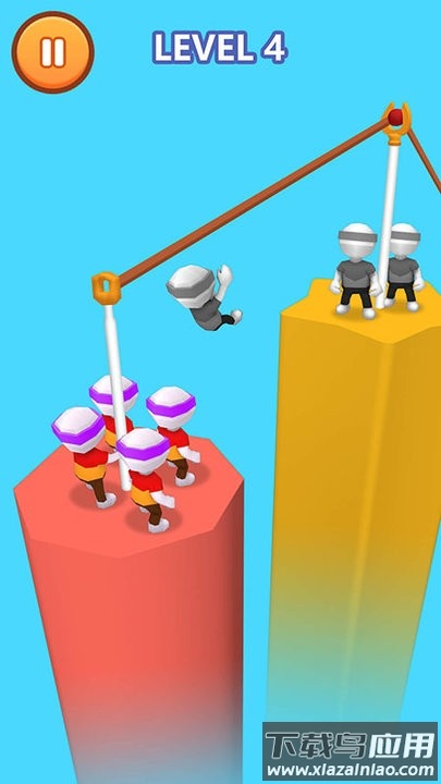这款游戏是一款手机冒险闯关类休闲益智游戏。玩家在游戏中要协助小人完成冒险挑战,玩法轻松有趣。核心在于把握时机,帮助被困角色通过绳索攀爬到其他圆桩上。喜欢的朋友可以下载体验。