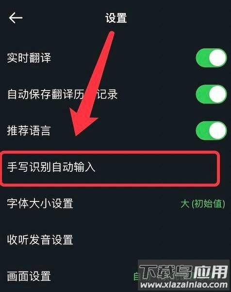 4、进入设置页面后,向下滑动,找到手写识别自动输入功能;